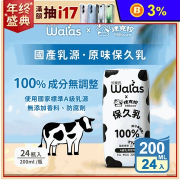 【鮮乳坊】100%生乳保久乳 200mlx1箱(共24瓶, 原味/巧克力)