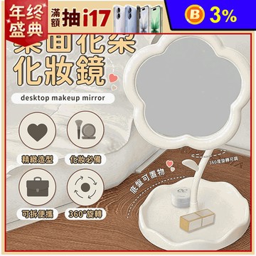 花朵造型桌面化妝鏡 360度旋轉鏡 可拆便攜收納 置物托盤 (三色)