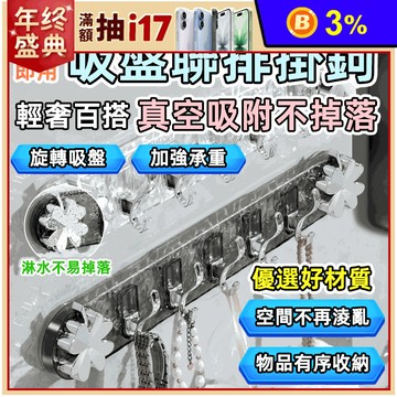 點我下載免打孔輕奢旋轉吸盤排勾 無痕 廚房 浴室 收納 衣帽
