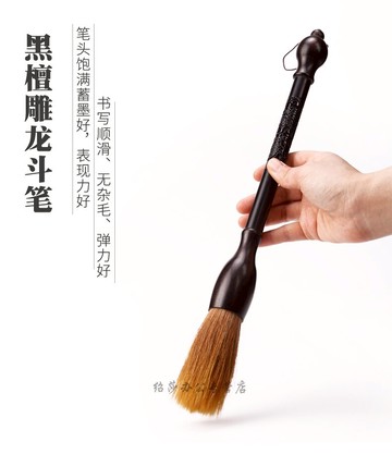紹莎文化狼毫斗筆大號狼毫抓筆黑檀木雕龍大楷對聯用狼毫長峰抓筆大提斗毛筆大福字春聯毛筆成人書法文房四寶