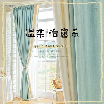 拼色臥室拼接窗簾2022新款客廳高級感法式奶油色棉麻加厚遮光ins