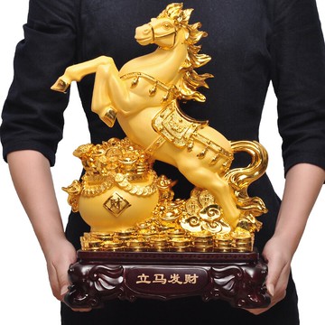 立馬發財沙金馬擺件大號招財風水辦公室桌開業工藝品馬的禮品擺設