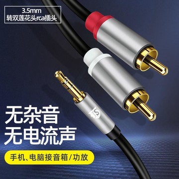 線壹分二3.5mm轉雙蓮花頭rca插頭手機電腦接功放音箱低音