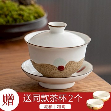 粗陶三才蓋碗單個防燙日式復古泡茶小蓋碗陶瓷不燙手蓋碗茶杯套裝