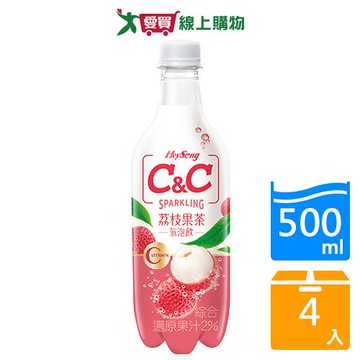 黑松汽水C&C氣泡飲荔枝茶500MLx4【愛買】