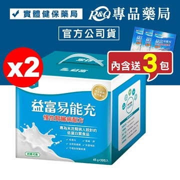 益富 易能充 (慢性腎臟病配方) 45gx30+3包X2盒 (專為未洗腎病患設計 奶素) 專品藥局【2030026】