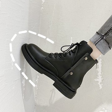 黑色馬丁靴女潮ins酷2021春秋新款英倫風大頭系帶厚底機車瘦瘦靴