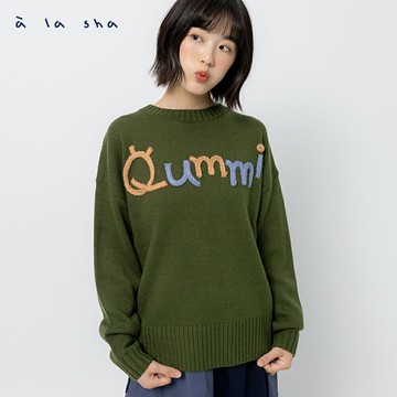 a la sha Q咪毛線繡花落肩針織上衣