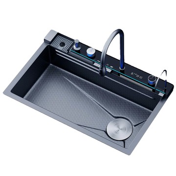 免運 開立發票 廚房水槽 洗菜盆 洗手盆 JOMOW加厚廚房數顯鯨魚飛雨水槽大單槽瀑布納米蜂窩不銹鋼洗菜池 快速出貨