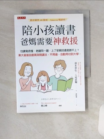 以下書況,主觀上皆可閱讀,若收到後不滿意,『都可退書退款』。 書況補充說明: B 自然泛黃書斑、髒污。 【購買須知】 (1)照片皆為現貨實際拍攝,請參書況說明。 (2)『賣場標題、內容簡介』為出版社原本資料,若有疑問請留言,但人力有限,恕不提供大量詢問。 (3)『附件或贈品』,不論標題或內容簡介是否有標示,請都以『沒有附件,沒有贈品』為參考。 (4)訂單完成即『無法加購、修改、合併』,請確認品項、優惠後,再下訂結帳。如有疑問請留言告知。 (5)二手書皆為獨立商品,下訂即刪除該品項,故『取消』後無法重新訂購,須等系統安排『2個月後』重新上架。 (6)收到書籍後,若不滿意,或有缺漏,『都可退書退款』。 [商品主貨號] U102818313 [代售商品編號] 102611700249 [ISBN-13碼] 9786267328323 [ISBN] 6267328325 [作者] 清水章弘, 八尾直輝, 黃怡菁 [出版社] 大是文化 [出版日期] 2023/08/30 [裝訂/規格] 平裝 / 272頁 / 14.8 x 21 x 1.36 cm / 普通級 / 單色印刷 / 初版 [目錄] 推薦序一? 這本書,讓你成為孩子的神救援/林怡辰 推薦序二? 陪讀know-how早知道,爸媽不會再抓狂/簡志峰 前言? 自學力,翻轉成績的關鍵 序章? 陪孩子讀書,爸媽需要神救援 1.?? ?逼孩子先解題,20分鐘後才能發問 2.?? ?「加油,再試試!」是無用的鼓勵 3.?? ?請家長耐心待在「守護區」 第一章? 不用拚命刷題,也能拿高分 1.?? ?刷題,不等於念書 2.?? ?直接抄答案,不是真用功 3.?? ?引導孩子自己找答案 4.?? ?ZCBA學習4階段,墊底變學霸 5.?? ?確認孩子的強項與弱科 6.?? ?利用身體記憶學更快 7.?? ?孩子勸不聽,家長該介入? 8.?? ?重複、歸納、具體,請這樣跟孩子對話 9.?? ?怎麼問考試結果,不尷尬? 10.?? ?讓孩子體驗被時間追著跑的感覺 11.?? ?起床、就寢、讀書都要規律 第二章? 跟東大爸爸學超強數學力 1.?? ?國小必學的5種數學力 2.?? ?四則運算,最強速解祕訣 3.?? ?算式和計算要分開寫 4.?? ?利用比例表,零秒解答 5.?? ?排列組合不要死背,動手畫 6.?? ?用直尺,畫平面圖、立體圖 第三章? 從生詞到閱讀,強化國語文能力 1.?? ?3大語文力,強化閱讀素養 2.?? ?文字,要「多重理解」 3.?? ?每天花15分鐘靜心寫國字 4.?? ?早就懂的詞彙,更要查字典 5.?? ?多用成語造句,作文就不難 6.?? ?練習起承轉合 7.?? ?表達自己的看法,從小到大都重要 第四章? 面對英文大魔王 1.?? ?英文只會越來越重要 2.?? ?用小尺寸筆記本背單字 3.?? ?搭配專用的點讀筆 4.?? ?市面好多學習App可參考 5.?? ?無痛學英文,可能嗎? 第五章? 新型考題的準備訣竅 1.?? ?基本學科,只是基礎 2.?? ?圖表、符號、文言文……最新試題攻略 3.?? ?升學關鍵:混合題型 4.?? ?資料及圖表,一次只能處理一個 5.?? ?親子一起寫200字作文 6.?? ?芝麻開門記憶法 第六章? 一句話神救援,孩子寫作業不拖拉 1.?? ?鼓勵的話,更要好好說 2.?? ?一邊稱讚,一邊偷渡「目標」 3.?? ?少說「你應該」、「我們要」 4.?? ?陪讀,也要見人說人話 5.?? ?越碎唸,孩子越不買單 6.?? ?家長要像「記者」 7.?? ?兩步驟,主動檢討考試成績 8.?? ?把平板電腦當教材,成效高 9.?? ?在客廳念書,讀書更專心 10.?? ?不遵守彼此約定,就要罰 後記 從「一根」筷子,養成東大思考 爸媽神救援,孩子潛力無限 [內容簡介] (出版商制式文字, 不論標題或內容簡介是否有標示, 請都以『沒有附件、沒有贈品』為參考。) ★累計銷售40萬冊、Amazon暢銷榜! ★日本朝日新聞電視節目熱烈迴響! ◎才看完題目,孩子想都不想就兩手一攤:我不會……。 ◎花錢上安親班,進度還是跟不上,爸媽只好親自教,但親子關係變很差。 ◎三催四請才願意寫作業,邊寫邊滑手機,常常寫到半夜! ◎拿到考卷胡亂訂正,完全不想這題到底錯在哪,下次又錯同一題! 各位家長陪小孩做功課時,也常為以上這些情境苦惱嗎? ?? ? 本書兩位作者清水章弘、八尾直輝,都是很會念書的東大高材生, 卻是在當了爸爸以後發現,陪小孩念書比當年自己考大學苦讀時更痛苦, 這題目明明這麼簡單,我的孩子怎麼可能不會? 於是他們共同創立了Plus T教育研究所,獨創ZCBA四階段學習法, 幫助許多中小學生從20分進步到80分、從墊底變班上前10、考上明星學校。 他說,陪孩子讀書不能只靠家長的碎唸,或是親力親為主動教, 而是要讓孩子願意自己解題目、找答案,培養自學力——翻轉成績的關鍵。 本書就是依據各種不同學習情境、不同學科,引導孩子自己念、寫作業不拖拉。 ◎不用拚命在安親班刷題,也能拿高分 ‧某些孩子的簡單,對其他人來說很難!但安親班不在乎。 作者獨創「ZCBA」,把學習程度分成以下4種: 完全不懂、須從旁協助、自己找答案、看完題目就會寫, 先確認你的孩子處在哪一種情境,再給方法。 ? ? 例如:當孩子處在完全不懂的階段,家長不能叫他自己想, 你得給指引:「先看看課本的第○○頁。」 ‧一問「你今天考得如何」,孩子就超反彈? 就算孩子考不好,不要馬上開罵,讓孩子自己說出「錯」在哪裡。 你得透過「重複、歸納、具體」3步驟,跟孩子對話,例如: 「你說你這次錯很多計算題,是嗎?」(重複孩子的話) 「會不會是你太著急?時間不夠用嗎?」(幫孩子歸納原因) 「哪裡寫錯?分數單元錯比較多,還是小數?」(找出具體答案) ? 這樣跟孩子對話,不管考好、考壞,彼此都不尷尬。 ◎東大爸爸這樣陪讀,快速打好國英數基礎 ‧解數學題目時,算式和計算要分開寫, 並多用等號,讓孩子從小建立A=B的邏輯思維; 出現很多