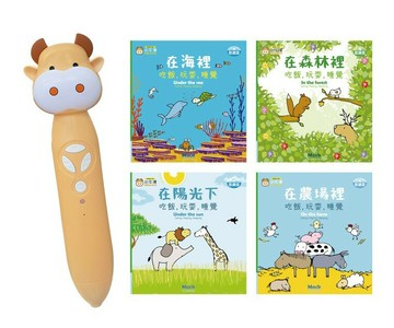 小牛津_鉑金版64G奶茶牛點讀筆+吃飯,玩耍,睡覺系列共4冊(在海裡/在陽光下/在森林裡/在農場裡)