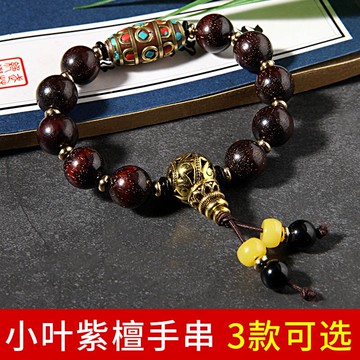 男士小葉紫檀手串佛珠單圈老料念珠天珠六字真言佛教配飾飾品
