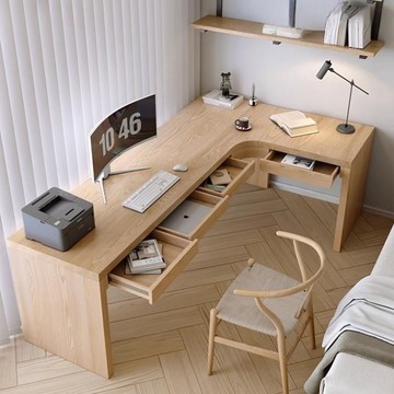 免運 可開發票 轉角書桌 電腦桌 實木轉角書桌L型學習長條定制簡約原木雙人寫字臺帶抽屜一體窄桌 台灣公司貨 快速出貨