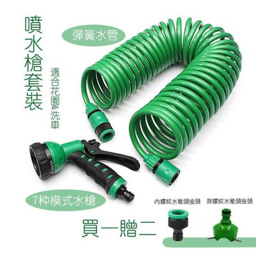 【現時下殺】⚡現貨⚡(7.51530M)彈簧水管組7段式水槍 洗車洗地園藝澆水陽臺沖洗多功能噴水槍 伸縮彈簧高壓水管