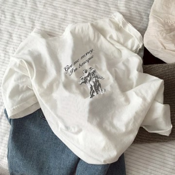 純棉美式印花寬鬆短袖上衣