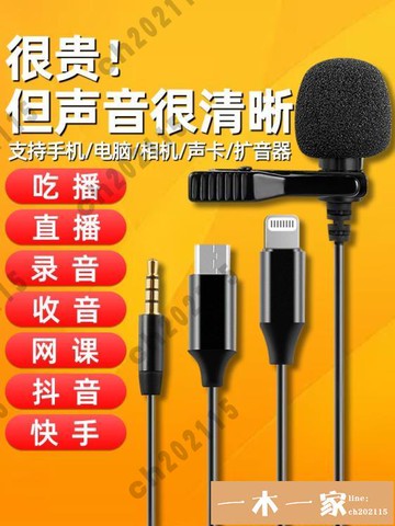 領夾式收音麥錄音專用麥克風抖音快手直播吃播聲控話筒電腦網課 99購物節