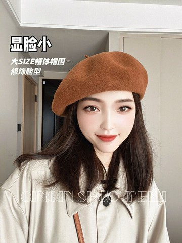 大號立體貝雷帽(無內襯)羊毛貝雷帽圓潤蘑菇顯臉小羊毛畫家帽