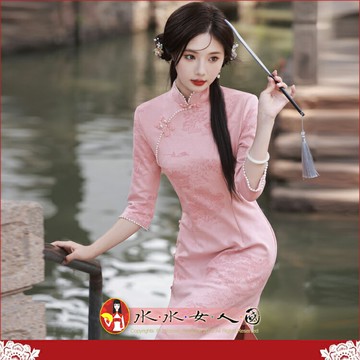2023年秋季江南蘇州五分袖水墨畫新品國風年輕款改良版連衣裙旗袍