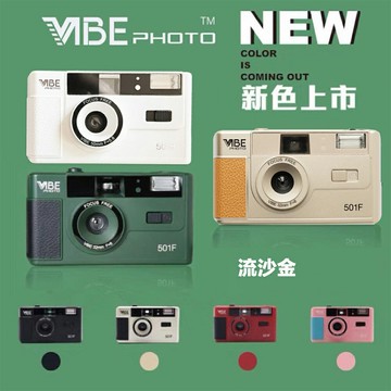 ??????請用心感受有溫度的攝影,放棄冷冰冰的數位器 ??????讓時間與溫度影響著拍攝出的作品,再次享受反璞歸真的感動 ??????無法預測的結果讓人更加期待 !! 德國????VIBE 501F/H?? 膠卷相機 非一次性135 內建閃光燈 底片規格:135底片(ISO200/400) 光學鏡頭:32mm/F=8 拍攝有效距離:免對焦/1公尺-無限遠 快門速度:1/120s a 過片:手動倒片,卷片 電池:1AAA-鹼性電池 重量: 約110g 材質: ABS 全格相機: 流沙金 / 經典黑 / 香檳銀 / 魅焰紅 / 馬卡龍粉 半格相機: 軍事綠 / 白色戀人