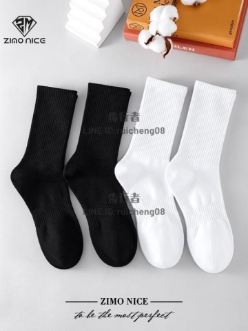 4雙襪子男長筒襪高幫純棉籃球襪加厚毛巾底中筒黑白純色夏季長襪【步行者戶外生活館】