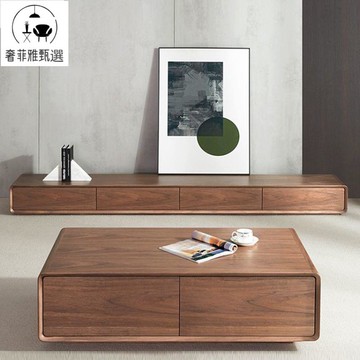 附發票 小戶型客廳超窄極簡電視櫃輕奢全實木落地整裝實木電視櫃茶幾組合