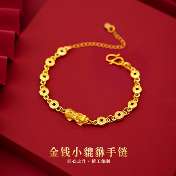 銅錢貔貅手鏈女夏2021新款情侶一對鍍金黃金色男越南沙金招財皮丘