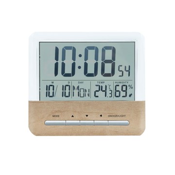 #置鐘 #CLARTE ●有日曆、溫濕度、鬧鐘功能,非常實用。 ●可設定貪睡模式:鬧鈴聲停止後(約5分鐘),鬧鈴聲再度響起的模式。 ●使用乾電池:4號乾電池3個。(電池另售) 編號 8171468 尺寸 約 寬14 深8.1 高12.1 cm 材質 ABS樹脂 顏色 原木色 商品類型 家飾品