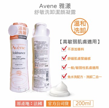 品名:舒敏洗卸潔顏凝露 容量:200ml 原產地:法國 用途:不添加香料,溫和洗臉、卸妝臉及眼部彩妝、不潔物,適用一般性或高敏弱肌膚使用。 用法:取適量塗抹全臉,以指腹輕輕按摩,再用面紙逝去,免沖洗。 全成分:AVENE THERMAL SPRING WATER(AV-ENE AQUA).CETEARYL ALCOHOL.AQUAPHILUSD- OLOMIAE EXTRACT FILTRATE.ARGININE.CAPRYLY. GLYCOL.COCO-GLUCOSIDE.DISODIUM PHOSPH-ATE. HYDROXYCAPRIC ACID. MAGNESIUM OXIDE POTASSIUM PHOSPHATE.SODIUM BENZOATE SO-DIUM CETEARYL SULFATE. SODIUM HYDROXIDETROMETHAMINE. WATER (AQUA). 有效期間:3年 保存期限/批號:如外包裝標示(月/西元年) 保存方法:請置於陰涼處避免日曬,使用完畢請封緊瓶蓋。 使用注意事項:若有任何不適或紅腫,請停止使用並洽皮膚科醫師。 輸入業者名稱:統一藥品股份有限公司 地址:台北市松山區東興路8號7樓 消費者專線:0800-000-070 #Avene雅漾 #高敏弱肌膚適用 #不添加香料 #溫和洗臉 #免水洗配方、洗卸二合一 ======================================= ---【消費者使用前應詳閱產品說明書】--- 相關查詢連結 ※設立許可證明文件(藥局、藥商): ▲查詢連結:衛生福利部首頁(www.mohw.gov.tw)/醫事機構查詢及醫事人員查詢 ※藥品許可證: ▲可供查詢連結: .「西藥、醫療器材、含藥化妝品許可證查詢」:衛生福利部食品藥物管理署(www.fda.gov.tw)/業務專區/藥品/資訊查詢/藥物許可證暨相關資料查詢作業/西藥、醫療器材、含藥化粧品許可證 .「中藥許可證查詢」:衛生福利部中醫藥司(www.mohw.gov.tw/cht/docmap)/中藥藥品許可證查詢 ======================================== 許可執照所載藥局名稱:美術藥局 地址:臺中市西區美村路一段567號 許可執照字號:中市藥局 字第 5903240278 號 統一編號:47424710 服務時間:星期一到星期五9:00-21:00 六9:00-18:00 諮詢電話: 04-23725286