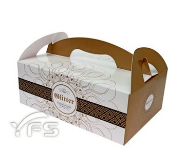 手提鏤空蛋糕盒 外徑16.2*高7*側16.2cm 海洋白卡325p+霧膜+燙金+PET 台灣產 朵朵圓舞曲 10個