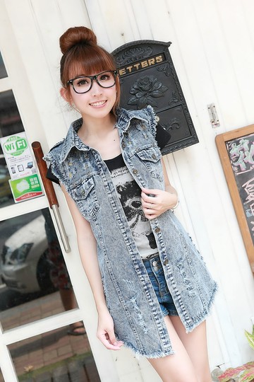 2014새로운 韓味時尚款必備修身馬甲雪花特殊工藝洗水馬甲(單色牛仔)