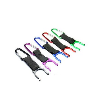可用來掛寶特瓶的快掛扣件,方便實用,可以掛在背包上,也可以掛在褲帶上,瓶扣扣住瓶頸後,絕對不會掉,有了它出門再也不會為水瓶沒地方放而擔憂了。 材質:鋁合金、尼龍布條。
