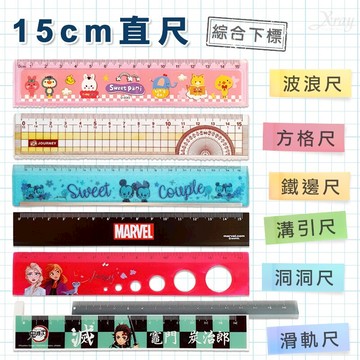 卡通造型15公分直尺(綜),波浪尺/方格尺/鐵邊尺/溝引尺/洞洞尺/滑軌尺/製圖尺/開學/文具,X射線【C545511】