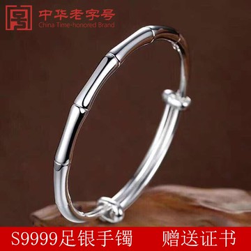 老鳳祥款純銀手鐲S999推拉光面竹節銀手鐲男情侶鐲子簡約小眾手環