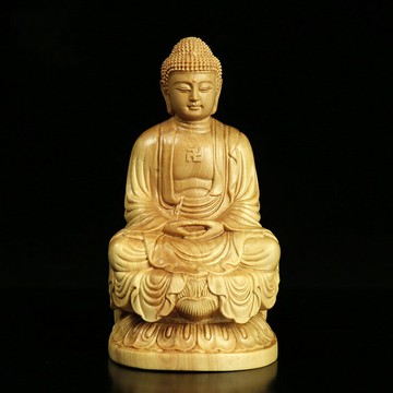 佛像 宗教擺件 家居擺件黃楊木雕坐蓮阿彌佗佛釋迦牟尼如來人物佛像家居車載擺件廠家直供