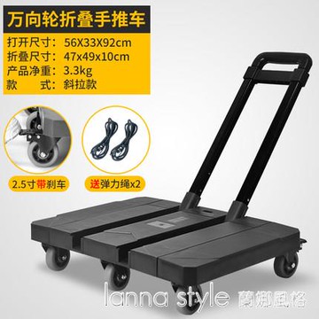 摺叠手推車 搬運推車 手拉車 小推車拉貨手推車可折疊便攜搬運神器家用靜音拖車快遞平板車四輪【MJ26139】