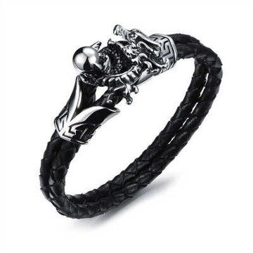 真皮手環 鈦鋼手鍊-霸氣復古龍頭造型情人節生日禮物男飾品73cq186【獨家進口】【米蘭精品】