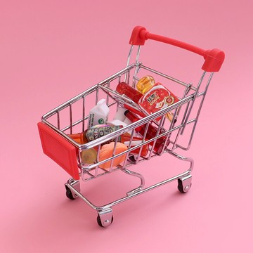 微縮迷你購物車食玩盲袋超市小推車娃娃屋配件手推車模型場景擺件
