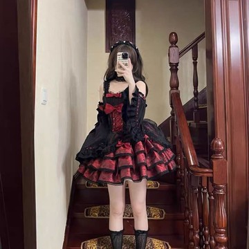 快速出貨 現貨薔薇執事黑紅洛麗塔裙子套裝 JSK甜辣lolita可愛二次元cos服 cosplay衣服 角色扮演 連衣裙套裝
