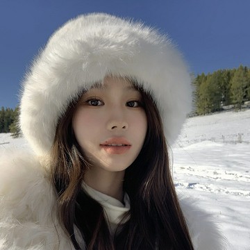 環保皮草帽子女冬季毛絨盆帽白色毛毛漁夫帽防風護耳保暖雷鋒帽潮