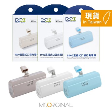 【商品規格】 品牌:MEGA KING 品名:5000mAh 直插式口袋行動電源【Lightning接口 / MFi認證】 型號:MK 5000 iPocket 來源:台灣代理商公司貨-原廠盒裝 保固:代理商保固1年 BSMI認證:R45157 產地:中國 China 製造年份:2023年 顏色:白色 / 藍色 / 奶茶 淨重:92 g 尺寸:78 x 46 x 25 mm 電芯容量:18Wh 額定電容量:2900mAh (5V/2.4A) 額定輸入:Type-C,DC 5V/2.4A 額定輸出:Lightning,DC 5V/2.4A 盒內配件:行動電源x1;說明書x1 【注意事項】 因商品為原廠一次性包裝,請確認型號後再購買,以免影響您的退貨權益。 務必詳讀,訂單商品鑑賞期間並非試用期,恕不提供試用、體驗等服務。如於鑑賞期間內申請退貨,需將商品恢復原狀。 (含包裝、配件等;產品一經註冊可能需要另外酌收額外的費用),且下單即視同同意上述條款,敬請再次確認,不便之處敬請見諒謝謝。