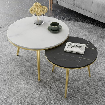 免運 開發票 北歐巖板子母茶幾網紅簡約現代小戶型輕奢風家用客廳沙發圓形桌子 快速出貨