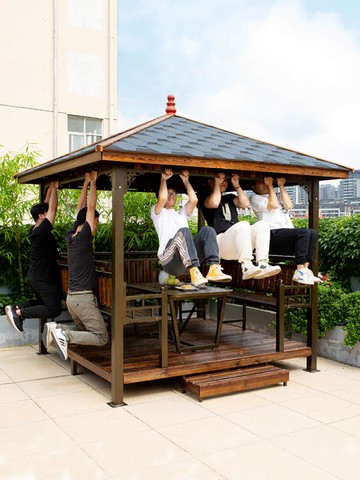 免運 可開發票 戶外涼亭 小木屋 別墅花園鋁合金遮陽棚 庭院移動室外休閑新中式亭子