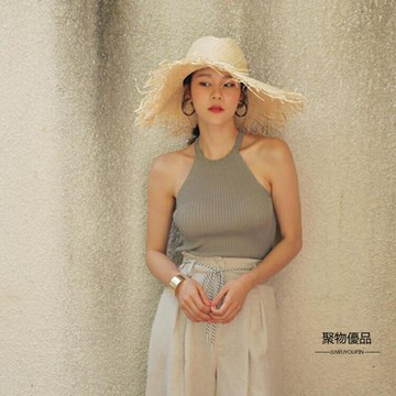晚晚林小宅同款拉菲草帽女夏天小清新韓版遮陽沙灘帽毛邊綁帶帽子1入