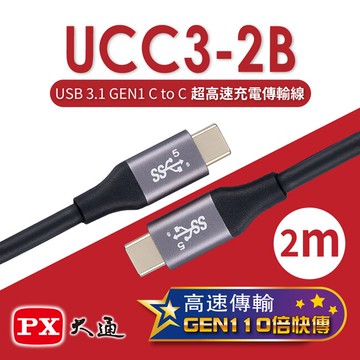 【PX大通】USB 3.1 GEN1 C to C超高速充電傳輸線(2m) UCC3-2B *USB 3.1 GEN1 SuperSpeed+高速(5Gbps)傳輸 *耐插拔(TYPE C接頭高達10000次) *大電流5V@3A充電 *支援快充規格:9V / 12V / 15V / 20V *鍍金插頭設計,傳輸更好、不易氧化 *導體鋁箔+交錯編織設計,傳輸更穩定 *聲音提示穩定插入 *UL防火外被 *向下相容USB 2.0/1.0 *連接電腦可進行資料傳輸用 *雙面通用插頭,無指向,正插反插皆可 *接頭採用鋁合金+PVC一體成型包覆,SR耐彎折不易損壞 *鍍金插頭,美觀、不易氧化,傳輸更穩定 *無毒環保線材,通過RoHS檢驗 *(贈)收納束帶,簡潔好收納 商品型號:UCC3-2B 顏色:黑 線長:2m 端子:鍍金 接頭:鋁合金(鐵灰) 包裝內容物:線材 x1 包裝尺寸:長86 x寬28 x高158 mm 本體重量:55g 含包裝重量:80g 產地:中國 國際條碼:4717536704444 【注意事項】 「完成訂購手續,不代表交易已經完成或契約已經成立,倘您尚未完成付款,若交易條件有誤、商品無存貨、服務無法提供、或有其他正當理由之情形,店鋪得於您訂購後兩個工作日內拒絕該筆交易。」 ※ 產品顏色可能會因網頁呈現與拍攝關係產生色差,圖片僅供參考,商品依實際供貨樣式為準。 ※ 商品如經拆封、使用、或拆解以致缺乏完整性及失去再販售價值時,恕無法退(換)貨! ※ 產品文案為原廠(供應商)所提供,若有變動敬請參照實際商品為準。 ★ 本商品恕不提供試用(使用視同購買)。 ◎ 全省運送但不含離島(例如:金門、馬祖、澎湖等地區),因外島無法配送若有訂單產生會主動取消訂單,恕不另外通知喔。 ※若退貨退回商品時,請以本公司或特約廠商寄送商品給您時所使用的外包裝(紙箱或包裝袋),原封包裝後交付給前來取件的宅配公司;如果本公司或特約廠商寄送商品給您時所使用的外包裝(紙箱或包裝袋)已經遺失,請您在商品原廠外盒之外,再以其他適當的包裝盒進行包裝,切勿任由宅配單直接粘貼在商品原廠外盒上或書寫文字。 ※提醒您,原廠外盒及原廠包裝都屬於商品的一部分,若有遺失、毀損或缺件,可能影響您退貨的權益,也可能依照損毀程度扣除為回復原狀所必要的費用。