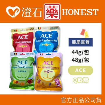 商品名稱:ACE無糖Q軟糖 規 格:48g/包 保存期限: 二年 成分: 依照圖片所標示 營養標示: 依照圖片所標示 商品名稱:ACE字母Q軟糖 規格: 48g/包 保存期限: 二年 成分: 依照圖片所標示 營養標示: 依照圖片所標示 商品名稱:ACE酸Q熊軟糖 規格: 44g/包 保存期限: 二年 成分: 依照圖片所標示 營養標示: 依照圖片所標示 商品名稱:ACE水果Q軟糖 規格: 48g/包 保存期限: 二年 成分: 依照圖片所標示 營養標示: 依照圖片所標示 商品名稱:ACE無糖Q可樂軟糖 規格: 44g/包 保存期限: 二年 成分: 依照圖片所標示 營養標示: 依照圖片所標示 中市醫材販 字第 MD6203042791號 醫療器材商名稱:澄石生技有限公司 醫材商諮詢電話:04-22515368 藥局名稱:澄石藥局 藥局諮詢電話:04-22511883 藥局地址:台中市南屯區公益路二段603號1樓 ??歡迎光臨✚澄石藥局?? ✔ 100%台灣賣家,台中實體店面經營 ✔ 賣場皆為全新公司貨,安心購買不擔心 ✔ 發票採用"電子發票",如需統編請先填寫 ??退換貨須知 • 賣場商品圖片僅供參考,因電腦螢幕與手機螢幕皆會有色差,以收到實際商品為主 • 收到包裹請先開箱並錄影,若收到商品有損壞或與實際不符合,請至「店長客服」訊息客服,會有專人為您處理 • 個人衛生用品若經拆封恕無法申請退換貨(含貼身內衣褲、口罩、紙尿褲、奶嘴、奶瓶) • 賣場商品皆為現貨,下單後即會安排出貨,恕不接受店長客服更改訂單 • 申請退換貨商品必須保持全新未拆封,若經拆封恕不接受退換貨