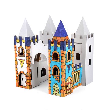 幼兒園兒童節手工DIY白色紙盒城堡涂色 創意彩繪紙板房子親子玩具