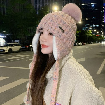 毛絨帽子女秋冬可愛毛線帽顯臉小護耳雷鋒帽防寒保暖包頭針織帽女