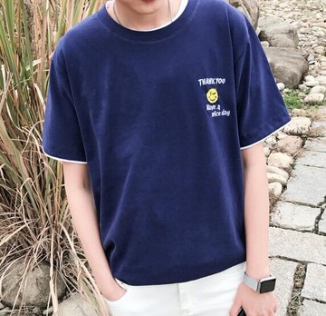 FINDSENSE品牌 夏裝新款 時尚百搭假兩件短袖T恤 潮男短袖 T恤男