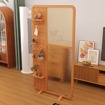 【公司貨 免運 速發】開發票 客製 客廳入戶櫻桃木座屏日式藝術玻璃屏風可移動藤編實木玄關隔斷定制