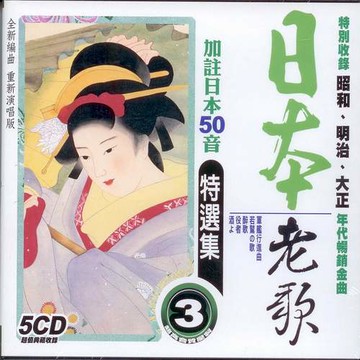 產品內容: CD11 01.軍艦行進曲02.愛國行進曲03. 燃ゆる大空04. 海の進軍 05.勝利の日まご06.軍隊小唄07.海軍小唄08.梅と兵隊09お山の杉の子10. ラバウル小唄11.愛馬進軍歌12.敵は幾萬 CD12 01.若鷲の歌02.太平洋行進曲03.同期の櫻04.戰友05.月月火水木金金06.轟沈07.空の神兵08.加藤部隊歌09. 曉に祈る10.露營の歌11.步兵の本領12.父よあなた強かつた13. 麦と兵隊 CD13 01.醉歌 醉歌02.赤い夕陽の故郷 黃昏的故鄉03.雨の中の二人 一支小雨傘04.捨てられた町悲情城市 05.雪国 雪國06.さよなら港 再會呀港都07.星影のワルツ 星夜的離別08.牡丹の曲 緣投囝仔09.泣くな霧笛よ 灯台よ 霧夜的燈塔10.上海の花売り娘 台北賣花姑娘11.船頭可愛や 行船曲12.そしてーめぐり逢い 降雪 13.おもいで酒 錯誤的愛 CD14 01.役者 藝界人生02.娘ざかり 舊皮箱的流浪兒03.みれんとうげ 送君情淚 04.お別れ公衆電話 離別公共電話05.上海の行街角 深情離捨06.長良川豔歌 長良川豔歌07.紅い睡蓮 黃昏的街頭08.長崎の鐘 長崎之鐘09.二人は若い 有你著無我 10.旅姿三人男 男性的氣魄11.異國の兵 異國男兒12. 丘を越えて 13.リンゴの唄 青春謠 CD15 01. 酒よ 傷心酒店02. シクラメのかほり 傷心到何時03. 星はなんでも知っている 星星知我心04. 湯の町エレジー 溫泉鄉的吉他05. 柳ヶ瀬ブルース 淡水河邊06. あん時ゃどしゃ降り 落大雨彼一日07. 涙をありがとう 迫迌人的目屎08. この道を行 命運青紅燈09. 島のブルース 綠島之夜10. おふくろさん 懷念媽媽11. 波止場気質 港邊送別12. 九段の母 慈母淚痕13. 赤城の子守唄 流浪漢的搖子歌